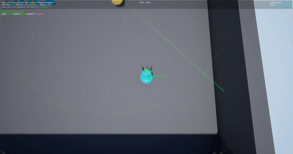 Chasing the player upon detecting him, using the AI Perception System. Played around with this to get smoother lines of movement and just the right amount of movement and turning speeds.